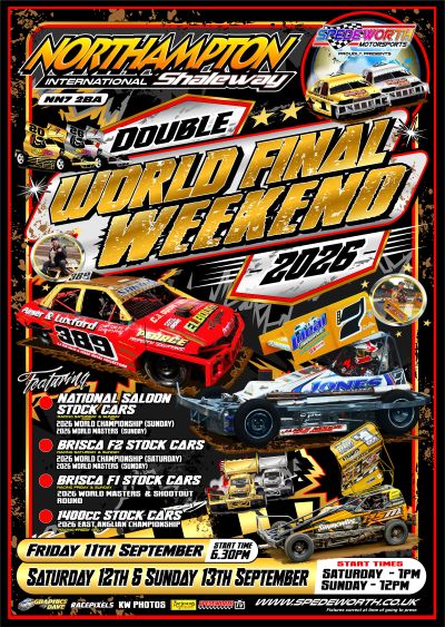 Spedeworth/Incarace, alongside BriSCA F2 and the SSCA, are excited to announce the event start times for the three-day spectacular at Northampton International Shaleway on 11th-13th September - a must-experience festival of Stock Car racing!